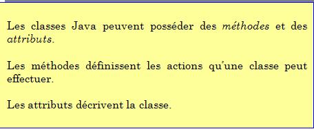 En langage Java, cette classe pourrait ressembler à ceci :