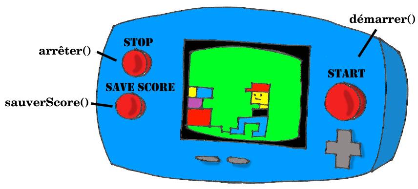 Créons et discutons une classe nommée JeuVidéo. Cette classe peut avoir plusieurs méthodes, qui représentent les actions que les objets de cette classe peuvent effectuer : démarrer le jeu, l'arrêter, enregistrer le score, etc. Cette classe peut aussi posséder des attributs ou propriétés : prix, couleur de l'écran, nombre de télécommandes et autres.