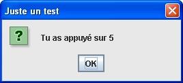 Maintenant, si tu appuies par exemple sur le bouton cinq, tu obtiendras la boîte de message suivante :