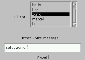 le bouton "envoi", l'applet transmet le message au serveur, dans le format :