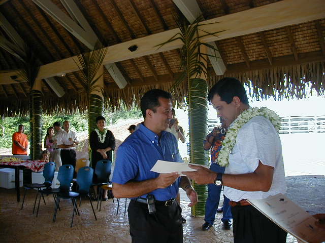 C'est en présence de représentants du territoire et après les discours de Madame Sylvie ANDRE, Présidente de l'Université de la Polynésie Française, Audy PATACCONI, lauréat de la formation et de Monsieur Edouard FRITCH, vice Président du gouvernement de la Polynésie Française que les lauréats de la promotion 2000 ont reçu leurs diplômes.